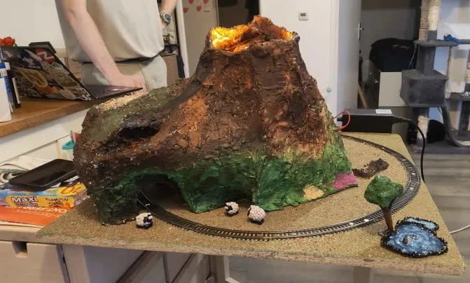 Le second jour de l’aventure, nous nous sommes dit qu’une table à Volcamp sans volcan, c’est comme une Marseillaise en mineur joué par un flutiste autodidacte. Du coup, c’est parti, faisons un volcan !