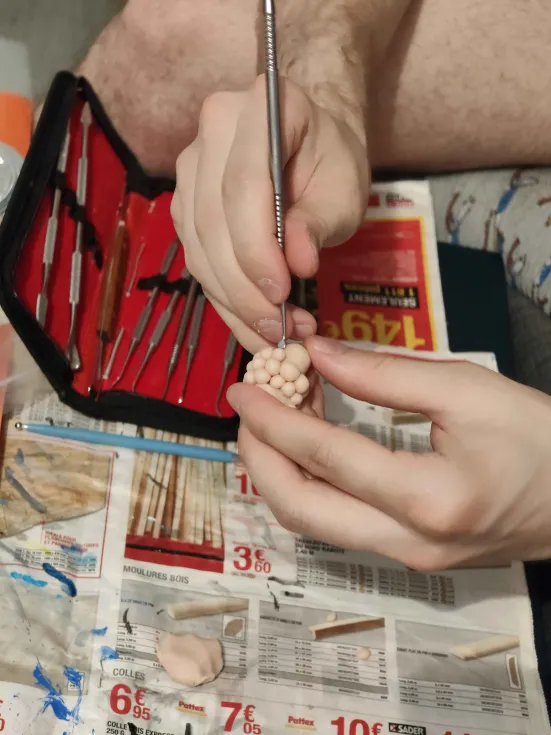 La pâte polymère a l’avantage d’être très malléable à la main, et de tenir en place avec une simple cuisson au four.