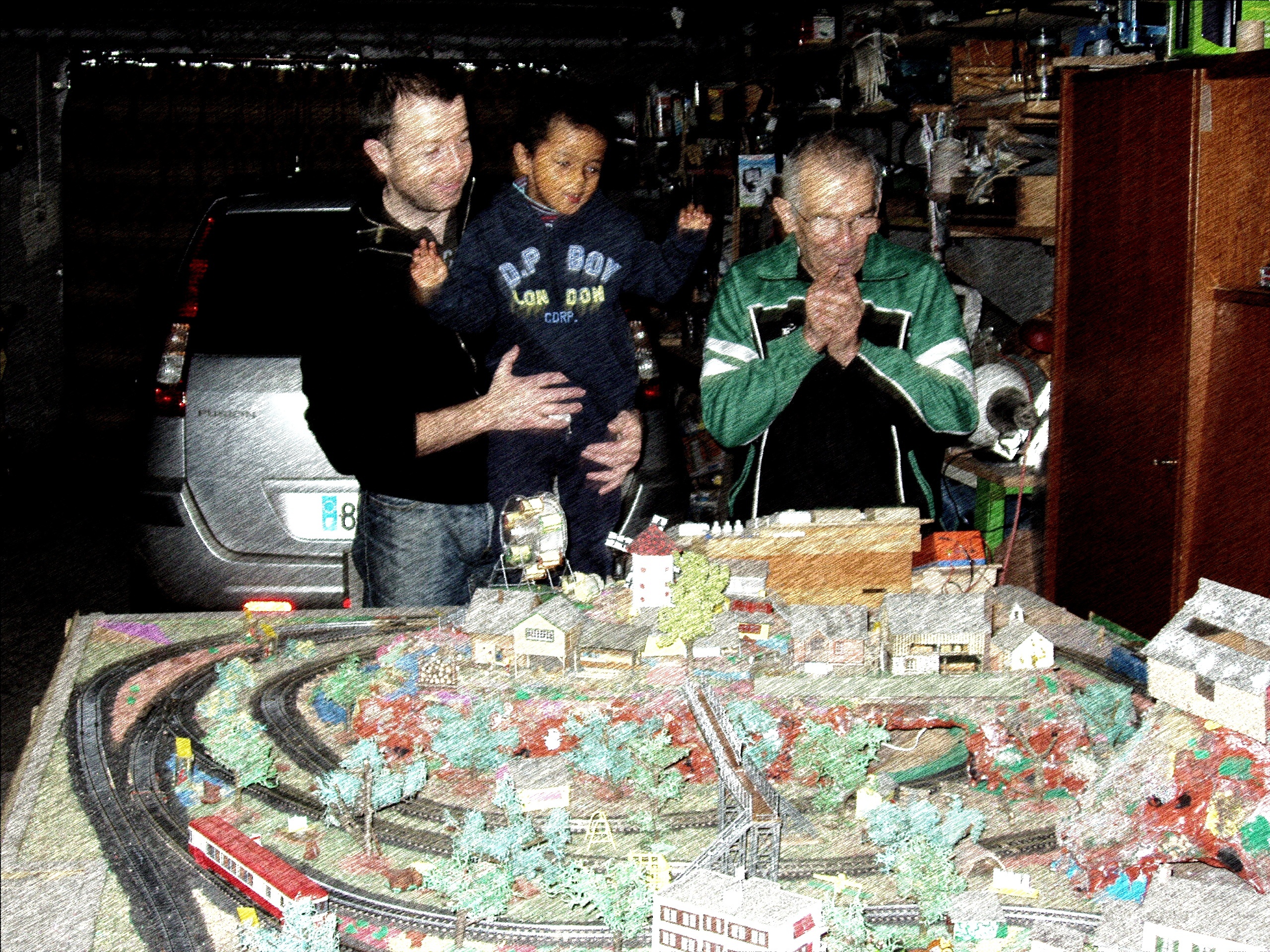 - Même sur notre grande table, 3 trains en simultané, à gérer, c'est rude