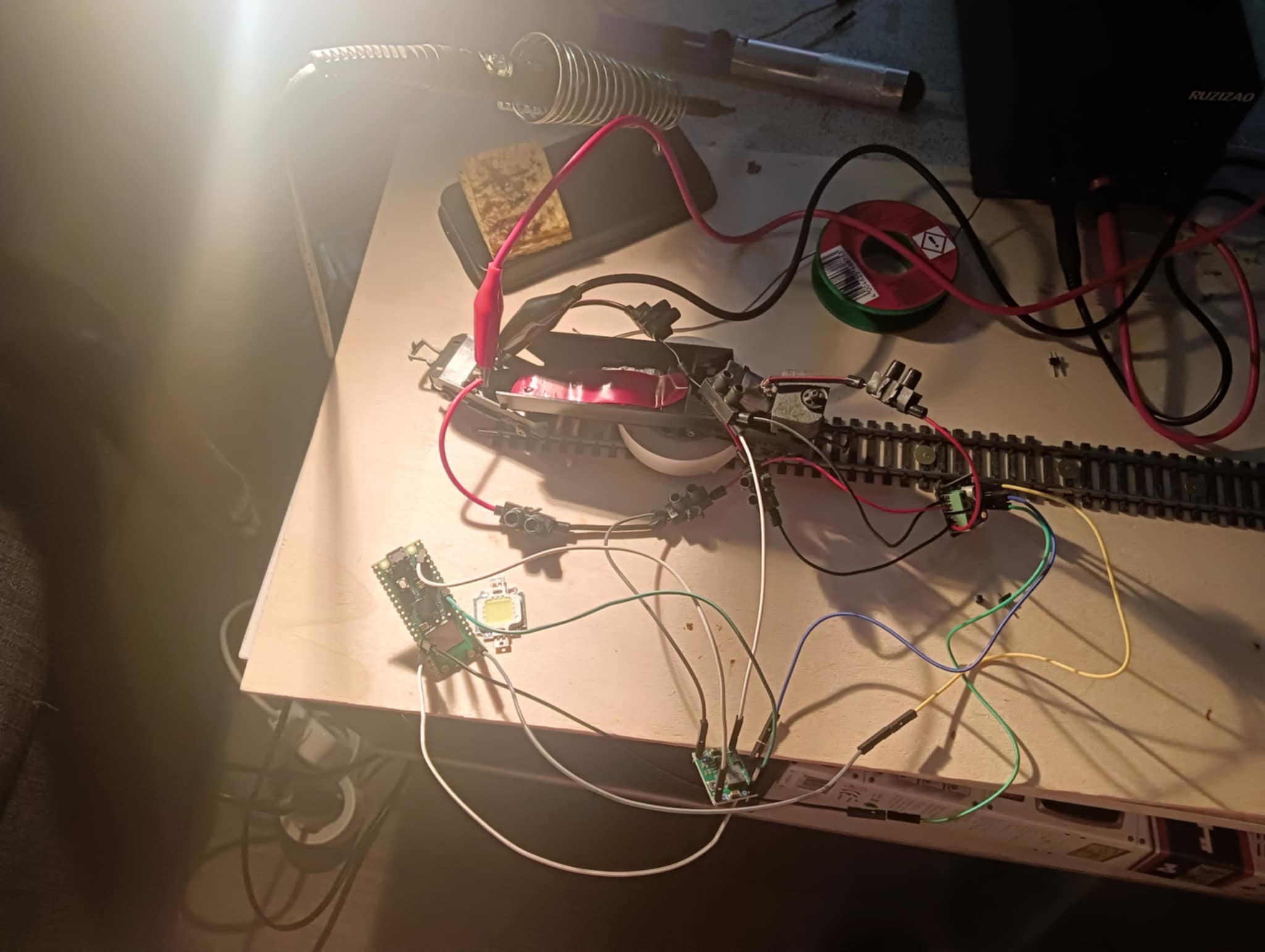 - Le rail est alimenté en 14V, le Pi prend 5V max => étincelles, chaleur, fumée.