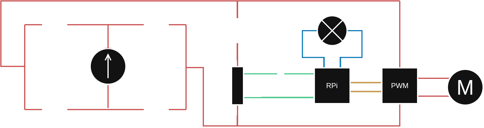 - Le rail est alimenté en 14V, le Pi prend 5V max => étincelles, chaleur, fumée.